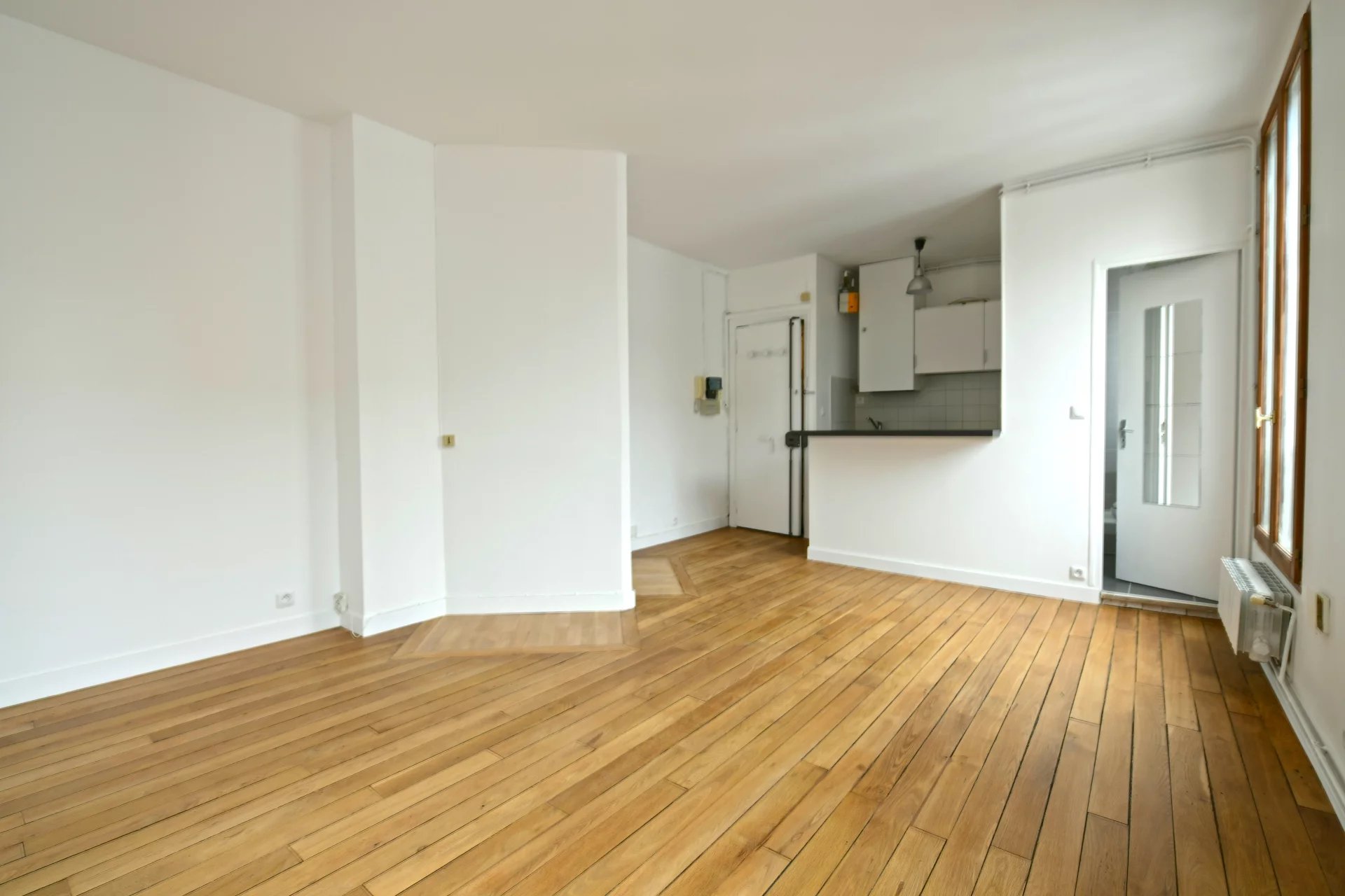 Situé à deux pas du métro Plaisance, au 3e et dernier étage sans ascenseur, studio entièrement de 24.50m² refait à neuf il y a quelques année et comprenant une pièce principale avec cuisine ouverte et une salle d'eau avec wc.