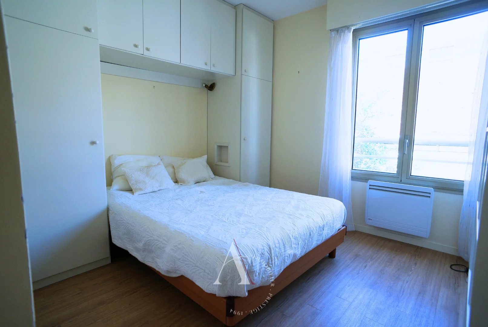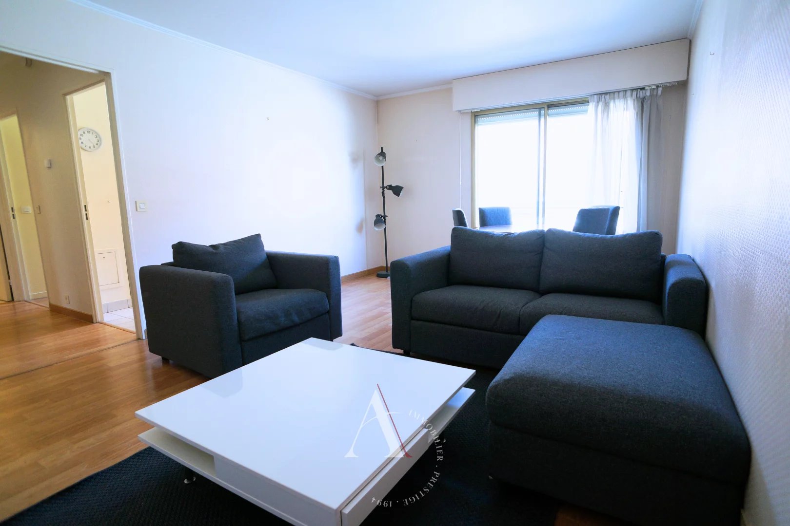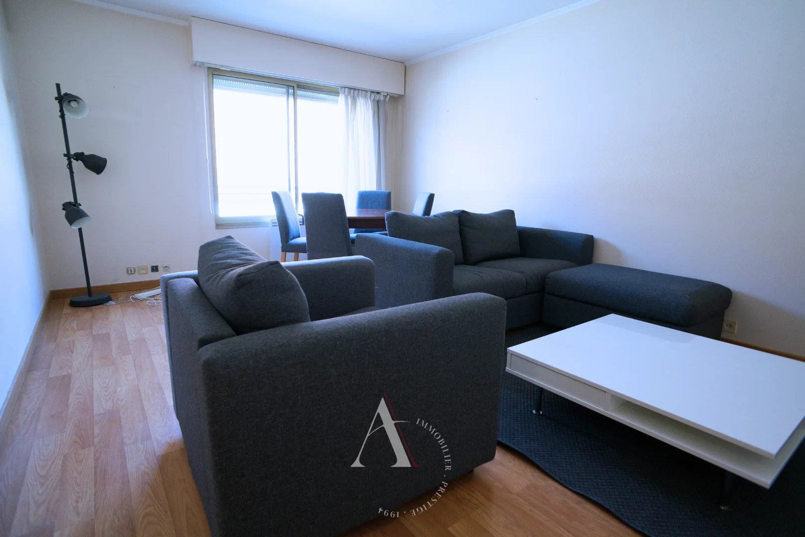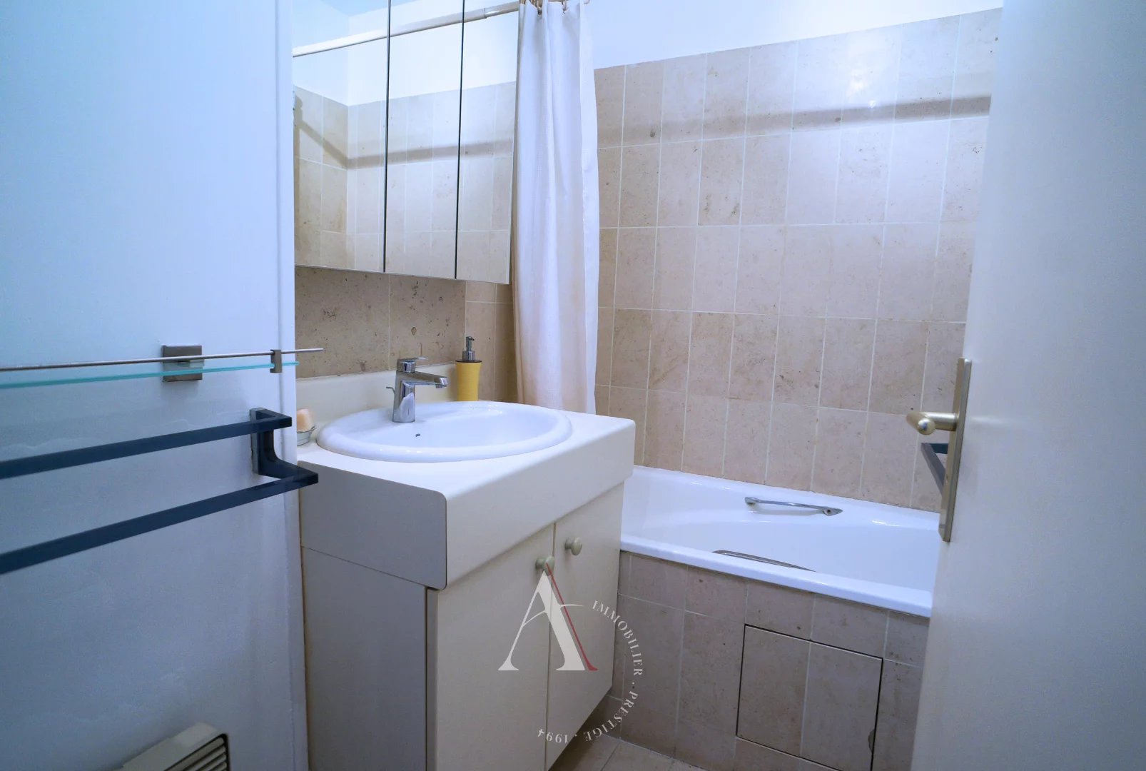 Dans une copropriété récente avec gardien, au 2ème étage avec ascenseur, appartement meublé de 45 m², calme, distribution en étoile comprenant une entrée avec placard, un séjour, 1 chambre avec grands placards de rangement, une salle de bains, WC séparé et une cuisine indépendante.